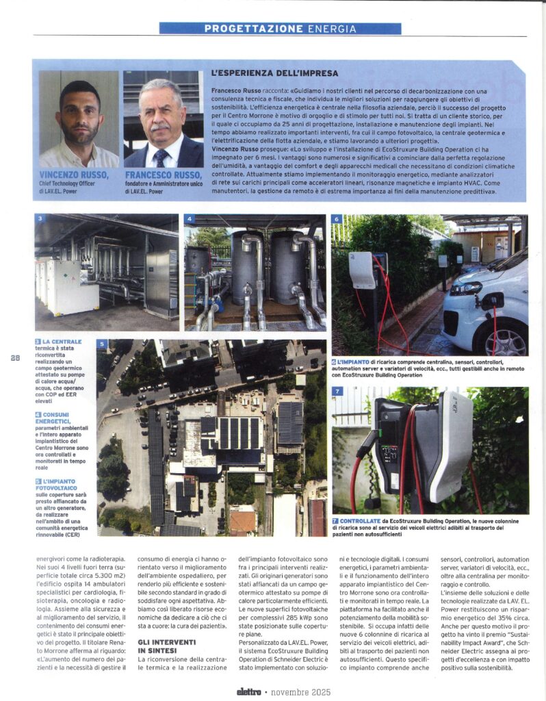 L’insieme delle soluzioni e delle tecnologie realizzate da LAV. EL. Power restituiscono un risparmio energetico del 35% circa. Anche per questo motivo il progetto ha vinto il premio “Sustainability Impact Award”, che Schneider Electric assegna ai progetti d’eccellenza e con impatto positivo sulla sostenibilità.